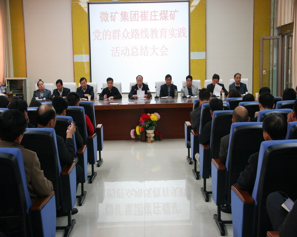 11月13日上午,崔庄煤矿召开党的群众路线教育实践活动总结大会。会议认真学习贯彻了中央、省市县委集团公司党的群众路线教育实践活动总结大会精神,结合本矿教育实践活动开展情况,对进一步巩固和拓展教育实践活动成果,加强党的作风建设,落实从严治党的要求进行总结部署。