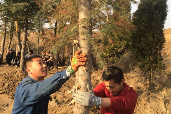 下午1点30分,大家准时携带工具来到了工作现场,对上午挖出的树木进行运送、栽种。人员分成两队,一队负责运送树木,一队负责挖坑栽种,之间有1000多米,地面高低不平,基本都是土路,而且松柏树针十分扎人,运输起来十分困难。有的同志划破了脸,有的手上磨出了泡,干到紧张处,为了将活干的快一点,连水都来不及喝一口。就这样连续了近三天,大家仍然干劲十足。此次义务劳动,不但为公司节省了开支,而且大家团结协作,增强了凝聚力,大家心往一处想,劲往一处使,一心为建设高标准的现代住宅小区而努力。