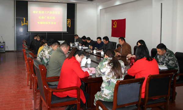 3月7日,根据县委组织部要求和集团公司党委及三产部党总支安排,机修厂党支部召开“两学一做”学习教育专题组织生活会,并对全体党员进行民主评议。集团公司政工部副部长张敏、副科长李艳敏到会督导,三产部领导朱道华、黄贵峰、王芳指导会议,在职党员、预备党员、积极分子参加会议。会议由党支部书记张伟主持。