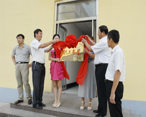 县总工会主席顾军、集团公司工会主席盛兆勇为电子阅览室揭牌