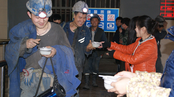 井口处,工作人员提前准备好了热气腾腾、香甜可口的汤圆,矿领导亲手将寓意平安、圆满的汤圆送到准备下井的职工手中,向坚守岗位的职工送上节日的祝福,并嘱咐他们时刻注意安全,杜绝违章,确保安全生产。