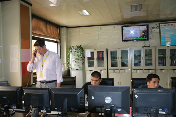 “因降雨矿东广水沟水位距离警戒线水位还有10mm,降雨继续,威胁矿井安全,立即停产撤人”。2016年5月18日14:30分欢城煤矿调度中心值班员张敏接到地面水位监测点检测员丁健的汇报后,按照《煤矿安全生产调度员十项应急处置权》和事故应急救援流程规定,立即向欢城煤矿井下各生产场所下达紧急停产撤人通知,并向值班矿领导王继超和矿长仲君汇报险情,并立即下达命令启动应急救援预案。