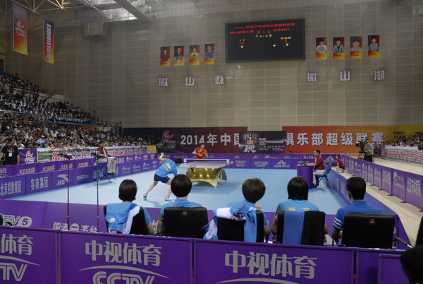 5月18日下午,由微山湖矿业集团赞助的2014年中国乒乓球俱乐部超级联赛(女子组)在微山县体育馆拉开帷幕,主场作战的微山县微山湖队首盘对阵金华银行队。