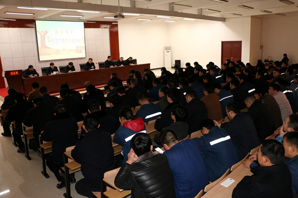 为确保市“两会”期间的安全生产,保持矿井安全形势持续稳定,泗河煤矿于2月22日上午召开安全管理人员会议,重点对省安全监察局王端武局长来矿检查和矿检查出的问题进行分析,同时总结前阶段安全生产情况,查找安全管理工作中的不足,拟定整改措施,对下阶段安全管理工作提出要求、安排部署。会议由矿党总支副书记王运德主持,矿党总支书记、矿长闫辉作了讲话,全矿副科级以上干部、矿班子成员、安全员、瓦检员、班组长、职工代表200多人参加会议。