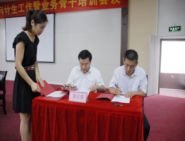 会上,纪委书记王统亚传达贯彻全县计生工作会议精神,党委副书记殷宪铎与各厂矿、部室签订《2014——2015年人口和计划生育目标管理责任书》。