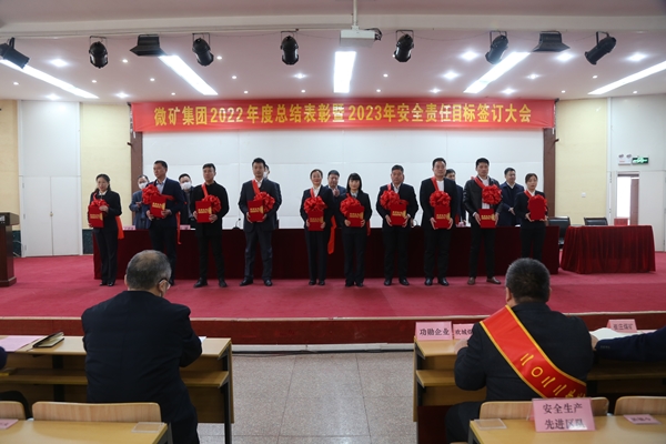 2023年2月6日,集团公司召开2022年度总结表彰暨2023年安全责任目标签订大会,全面回顾总结公司一年来的工作,隆重表彰了各单位涌现出的先进集体和先进个人,安排部署了2023年的工作任务。集团公司领导班子成员、各单位副总工以上及办公室主任、政工科长、集团部室副科级以上、受表彰的先进集体、先进个人代表等人员参加了会议。会议由集团公司党委书记、董事长张玉涛主持。