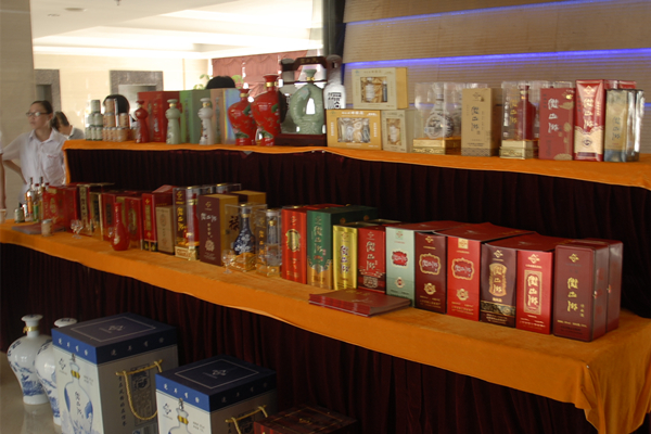 参加展出的微山湖系列白酒
