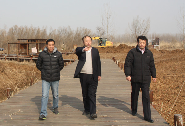 2月 21日,集团公司总经理贾凤君来湿地科普区施工现场检查指导工作,湿地公司经理崔玉涛、副经理王孝琪陪同检查。