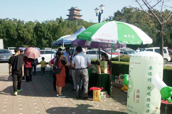 除此之外,德道源饮品还走进了滕州上善公园、莲青山、薛城临山公园等景点,很多游客被天然养生、健康时尚的德道源饮品所吸引,纷纷驻足品尝,竞相购买,将微山湖的绿色饮品带回去给朋友品尝。