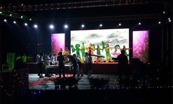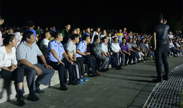 文艺演出在火爆激情的水鼓表演中拉开了序幕,整场演出由舞蹈、歌曲、魔术、武术串烧、乐器演奏等10余个精彩节目组成。演出过程中不时穿插一些互动游戏,增进了当地居民与外地游客之间的情感交流和娱乐互动。在持续了近两个小时的演出中,现场观众热情不减,台下不时报以热烈的掌声。