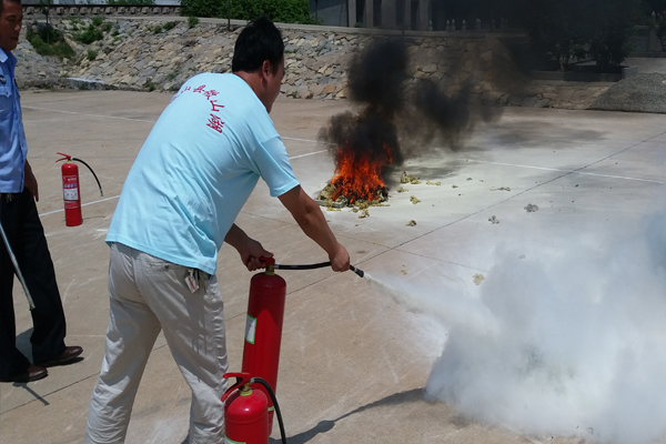 上午十点,随着指挥部一声令下,演练开始。县消防中队负责同志现场为大家讲解了公司可能存在的火源种类以及灭火方式的选择,并强调消防安全一定要将“防”置于首要位置,并现场演示了常用的手提式干粉灭火器使用方法及注意事项。应急救援小组成员积极踊跃,在炎炎烈日下面对熊熊燃烧的火堆,按照灭火的方法步骤,将燃起的大火迅速扑灭。