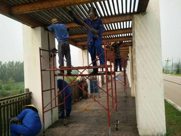 针对高温时节是木栈道防腐、除锈、刷漆和维护的关键时期,精密制造公司接到任务后,积极协调集团公司有关部门,备足物料,准备所需工具。为了进一步节约资金,能制作的工具自己制作,一切准备就绪后,第一时间进驻湿地公司组织施工。