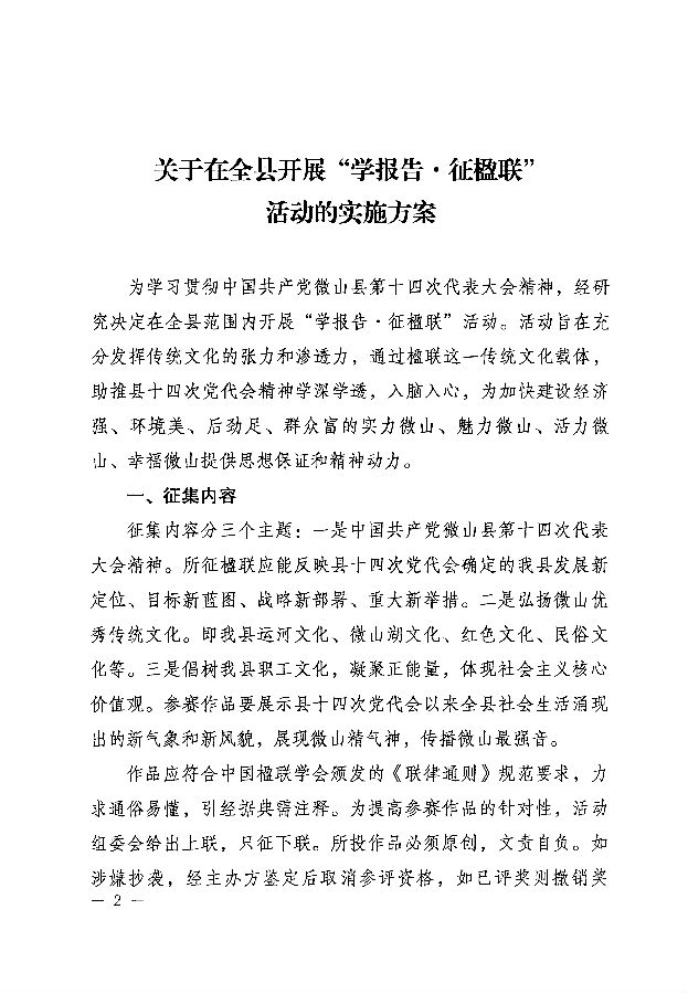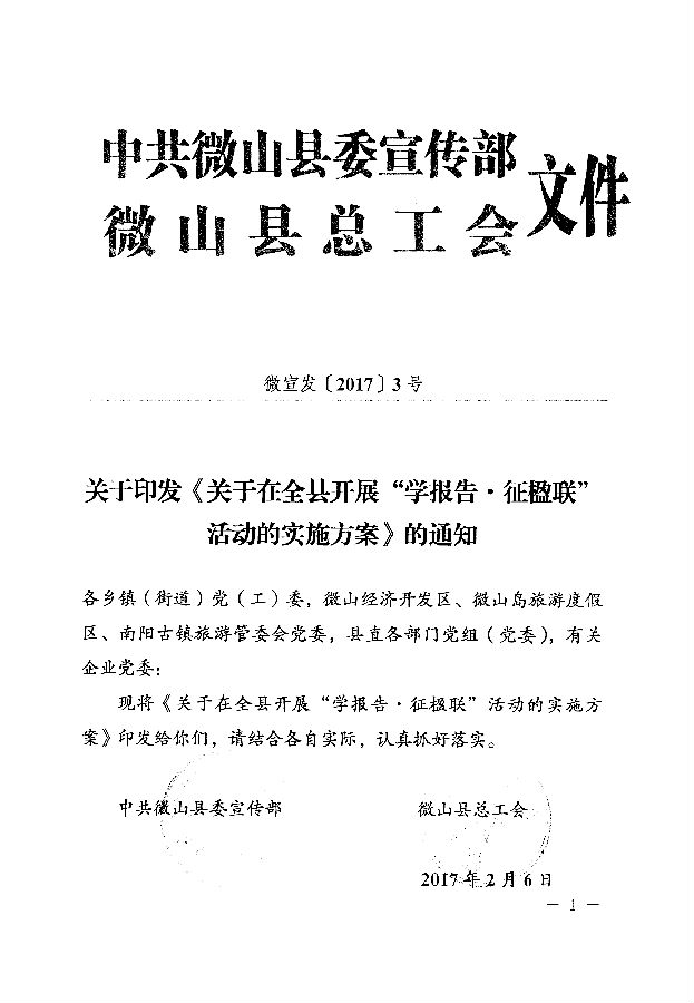 《关于在全县开展“学报告 征楹联”活动的实施方案》的通知