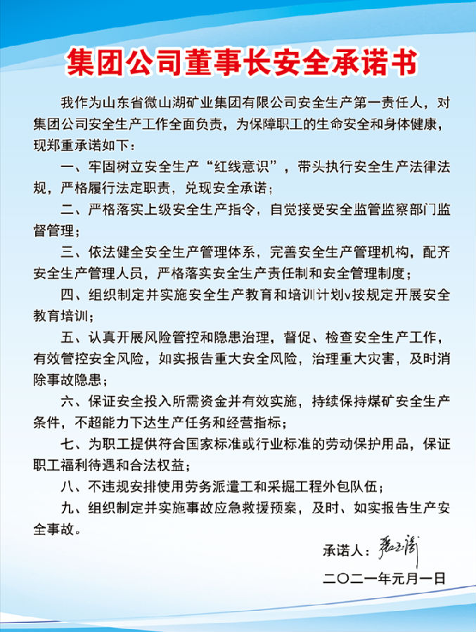集团公司董事长安全承诺书