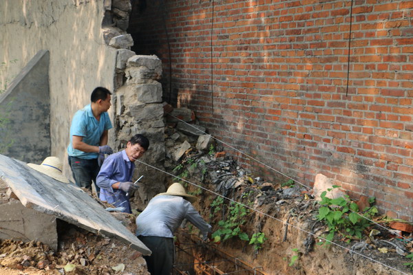 二号矿东部围墙因使用时间久、紧邻河岸等原因,中部变形严重,随时有倒塌的可能。为保障安全,二号矿决定进行重建,经实地勘察、预算,变形危墙长52米,高4.3米,如外委承包施工需5万元开支,而自己施工则仅需1万余元。为节省开支,二号矿把这项工程交给了通巷工区。