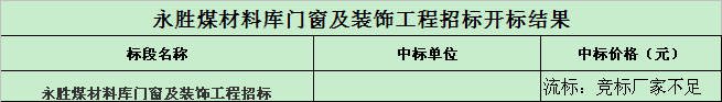 招标结果:永胜煤材料库门窗及装饰工程招标