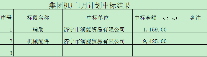 招标结果:微山湖矿业集团(集团机厂)1月材料采购招标
