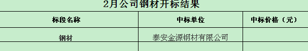招标结果:山东省微山湖矿业集团2月(钢材)材料采购