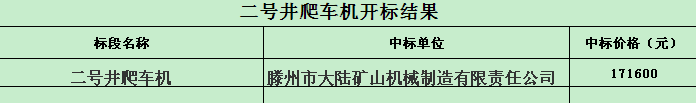 招标结果:二号井爬车机