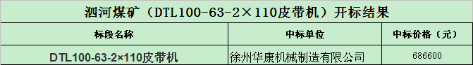 招标结果:泗河煤矿(DTL100-63-2×110皮带机)