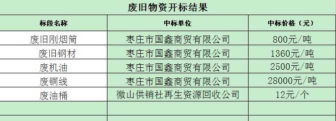 招标结果:BEVITOR·伟德国际废旧物资