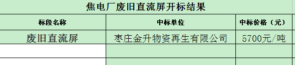 招标结果:焦电厂废旧直流屏